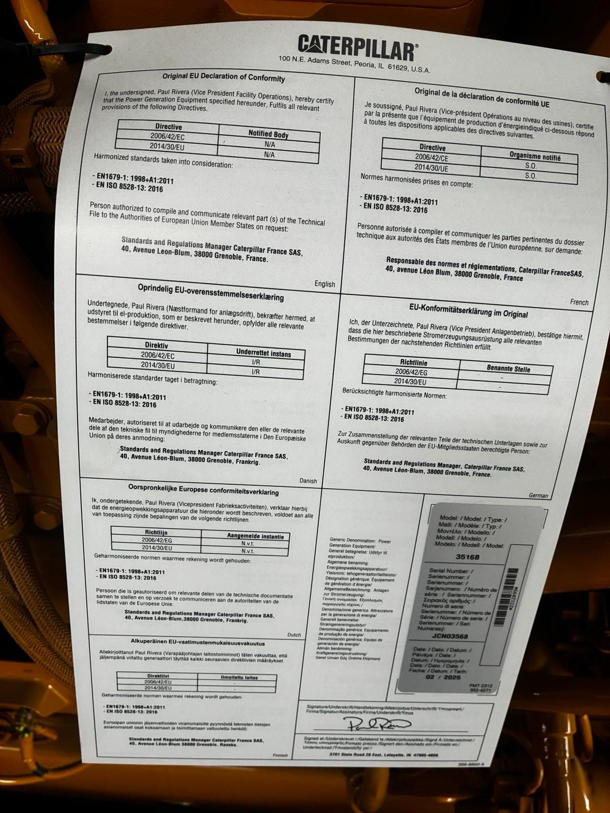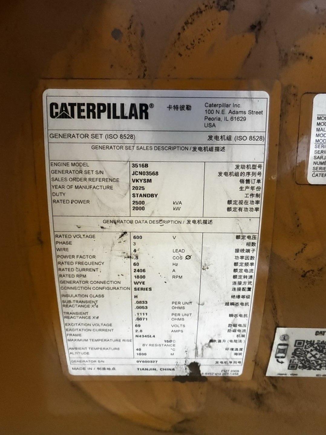 CAT 3516 Diesel Generator – Standby Power 2500 kVA / 2000 kW – 600V – 3‑Phase – 60 Hz